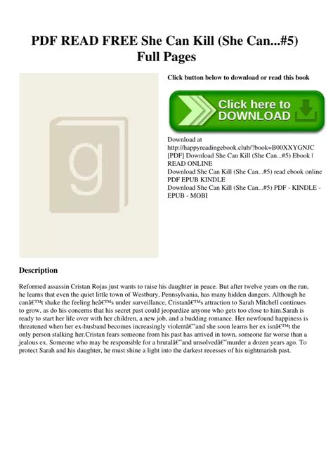 Read download she can kill Reader By Click Button. download she can kill it’s easy to recommend a new book category such as Novel, journal, comic, magazin, ect. You see it and you just know that the designer is also an author and understands the challenges involved with having a good book. You can easy klick for detailing book and you can read it online, even you can download it